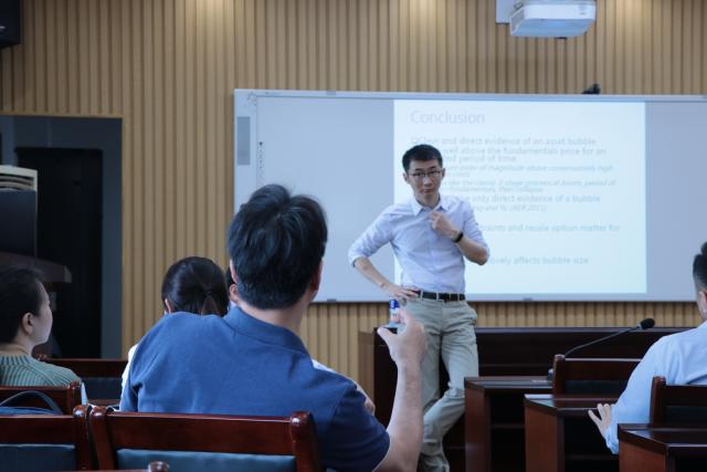 At the beginning of the lecture, Gui Hefa introduced Professor Wang Yongxiang's position and key research directions, and expressed his welcome and thanks to Professor Wang Yongxiang for coming to the school to give lectures. In the lecture, Professor Wang Yongxiang first asked the question: What caused the asset bubble? Is there an asset bubble? Then, he gave a detailed introduction to the personal collection trading market (Nanjing Cultural Exchange Coin and Stamp Trading Center) and the stamp trading data collected by the article for empirical analysis. Accepted, he elaborated on the six research results from data analysis: one is that there is an asset bubble; the other is that when the asset's useful life is unlimited, the size of the bubble is related to the interest rate; the third is that the size of the bubble is related to the transaction volume and volatility; the fourth is that Tobin tax will reduce transaction volume or volatility, but will not reduce bubbles; fifth, there is a momentum effect; sixth, more naive investors will participate in larger bubbles.