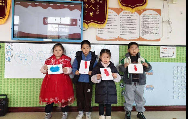 随着时间的流逝,原本空白的画纸上,一幅幅作品已初具雏形:跃然纸上的花卉、憨态可掬的熊猫、充满想象力的星空图景……孩子们高举作品站成一排,镜头定格下这份纯真的快乐。